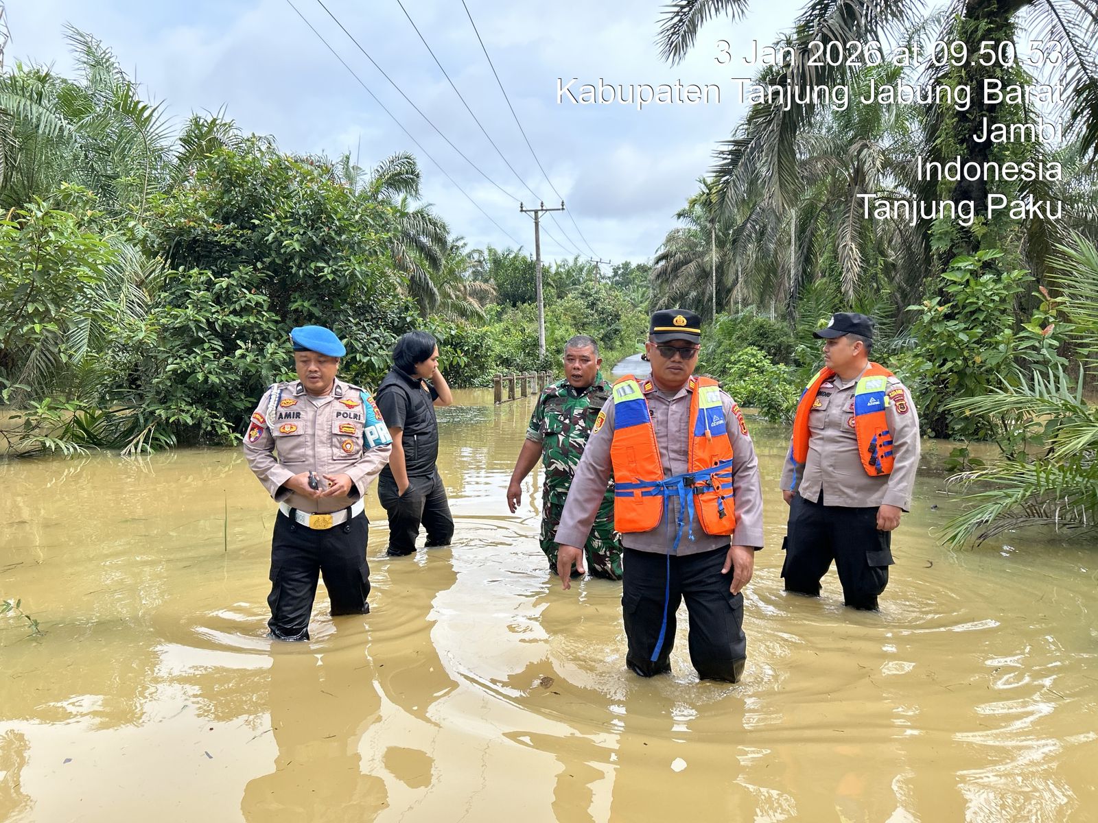 Hingga saat ini, personel Polsek Merlung masih disiagakan di lokasi-lokasi rawan untuk membantu warga dan mengatur arus lalu lintas di titik genangan.