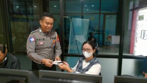 Sungguminasa, Gowa – Dalam rangka menyambut hari raya Natal dan Tahun Baru, Kanit Regident Satlantas Polres Gowa, Ipda Rusli Leo, S.H bersama personil unit regident membagikan kue kepada peserta ujian SIM yang telah melaksanakan ujian, Kegiatan ini bertujuan memperkuat hubungan antara polisi dan masyarakat serta menyebarkan kegembiraan di akhir tahun.
