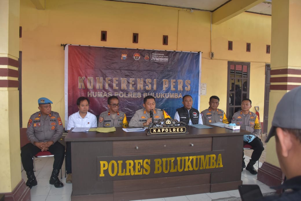 Saat konferensi pers, Kapolres Bulukumba didampingi oleh Waka Polres Kompol Syafaruddin, Kasat Reskrim AKP Aris Satrio Sujatmiko, Kasat Narkoba AKP Syamsuddin, Kasat Lantas AKP Muhammad Idris, Kasi Propam Iptu Andi Pannanrangi, serta Kasi Humas AKP H Marala.