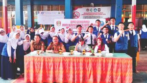 Tak Ketua DPC GANN Kab. Wajo Andi Herlind Yulianti Indra besera siswa siswi dari pengurus OSIS SMPN I Sengkang.