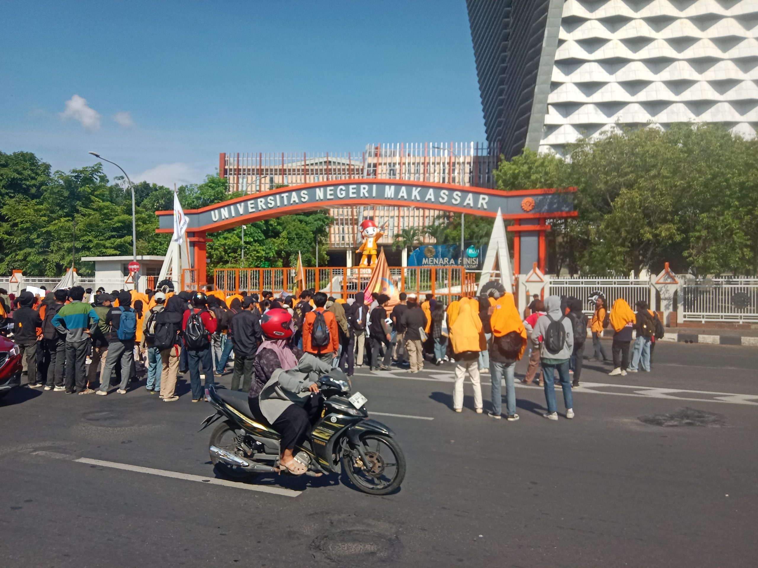 Ratusan Mahasiswa dan mahasiswi Universitas Negeri Makassar. Turun bersama melakukan unjuk rasa di depan kampus sambil melakukan pembakaran Ban dan menutup sebagian jalan Pettarani depan kampus UNM Makassar 5/11/2025