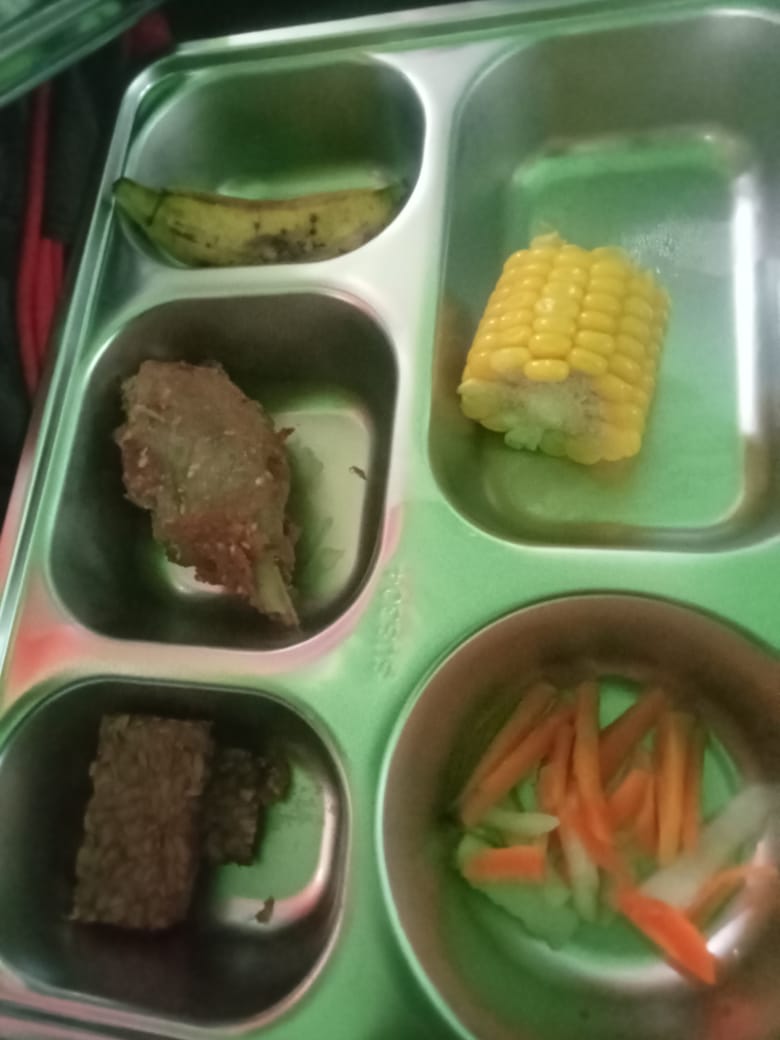 Berdasarkan dokumentasi yang diterima redaksi, terlihat satu paket MBG hanya berisi potongan jagung rebus, tempe goreng, satu potong ayam goreng berukuran kecil, sedikit sayuran, serta satu buah pisang. Pada paket lain, terdapat tambahan roti, telur, dan kerupuk tempe dalam kemasan, namun tetap dinilai minim dari sisi variasi dan kecukupan gizi, khususnya bagi anak-anak.
