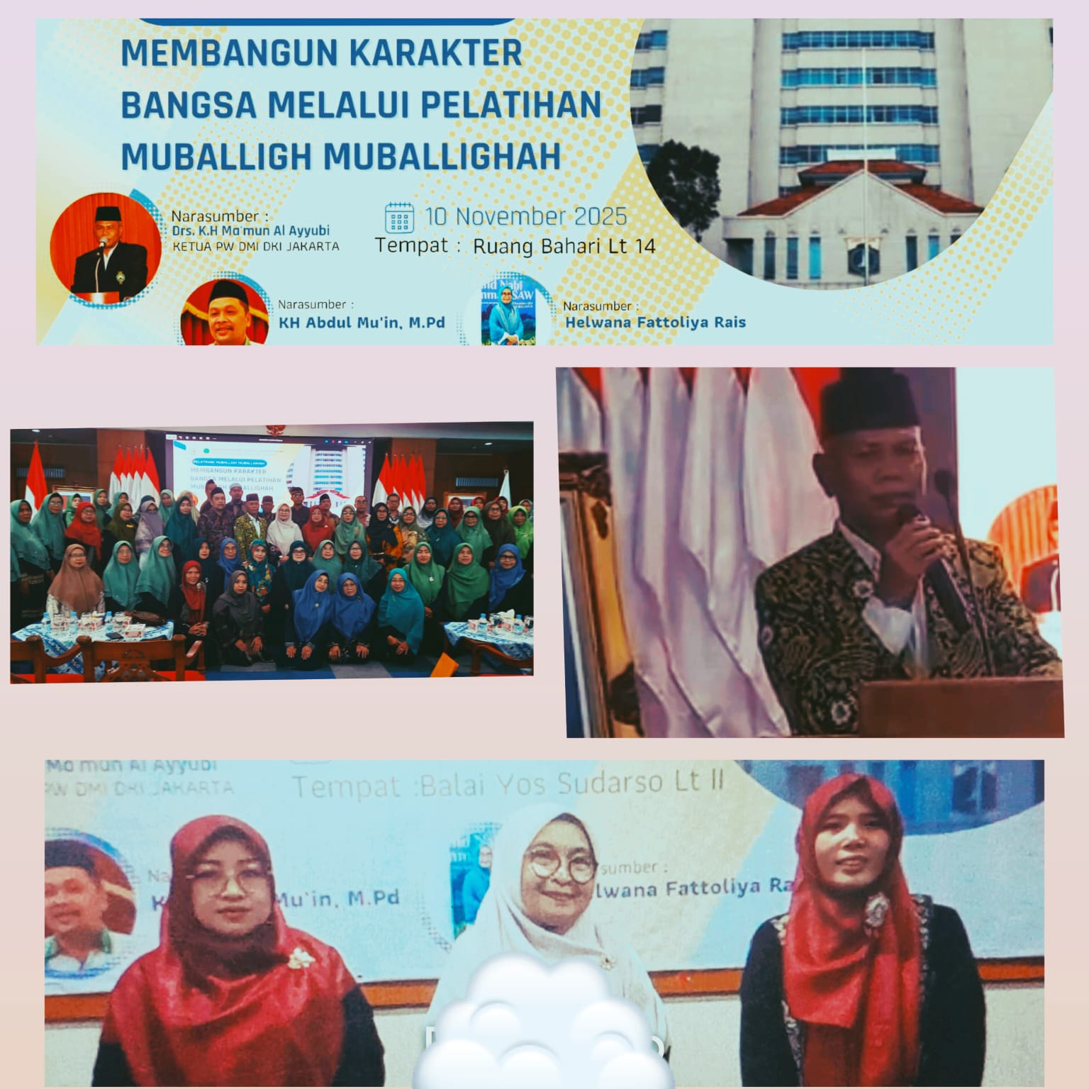 Jakarta, 10/11/2025, Pelatihan Muballigh Muballighah Sejakarta Menghadirkan Ketua PW DMI Propinsi DKI Jakarta Drs.K.H Ma’ mun Al Ayyubi pada Pagi Hari Senin 10/11/2025 di gedung Bahari Walikota Jakarta Utara lantai 14 Pukul 8.00 WIB.
