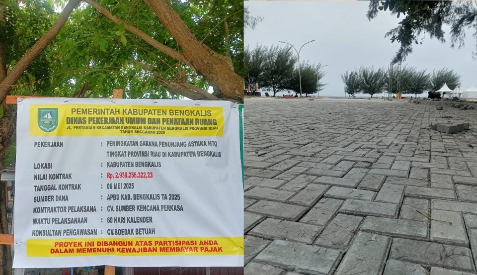 Pembangunan sarana penunjang Astaka Musabaqah Tilawatil Qur’an (MTQ) tingkat Provinsi Riau di Kabupaten Bengkalis kembali menuai sorotan tajam. Proyek bernilai ratusan juta rupiah yang dikerjakan oleh CV. Sumber Kencana Perkasa ini diduga kuat dikerjakan secara asal-asalan, dengan kualitas yang jauh dari standar teknis yang seharusnya diterapkan.