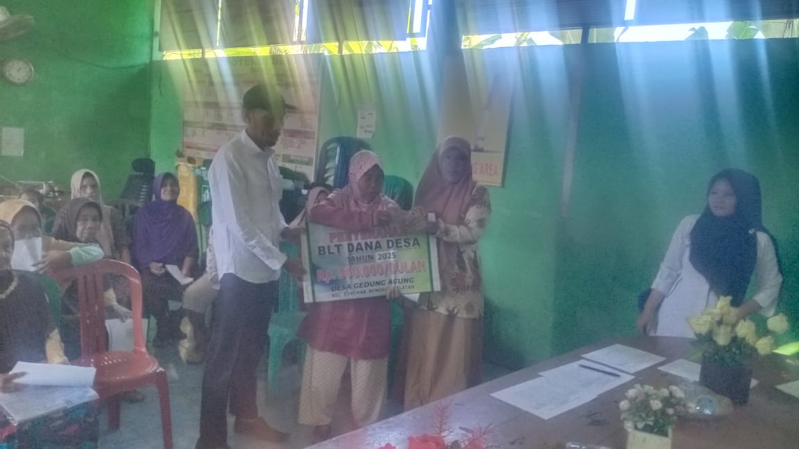 BENGKULU SELATAN, MediatorjurnalTV — Pemerintah Desa (Pemdes) Gedung Agung, Kecamatan Pino, Kabupaten Bengkulu Selatan, sukses salurkan Bantuan Langsung Tunai Dana Desa (BLT-DD) tahap Ke- II tahun anggaran 2025. Rabu (05/06/2025).