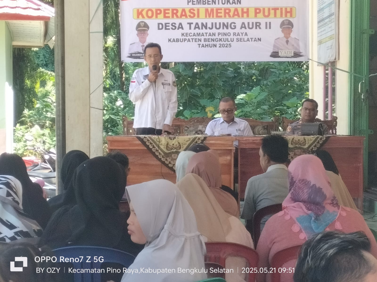 Desa Tanjung Aur II Bentuk Koperasi “Merah Putih” Sesuai Intruksi Presiden No 9 Tahun 2025. Warga Desa Tanjung Aur II, Kecamatan Pino Raya Kabupaten Bengkulu Selatan, melaksanakan Musyawarah Desa Khusus (MUSDESUS) untuk membentuk Koperasi Desa Merah Putih.