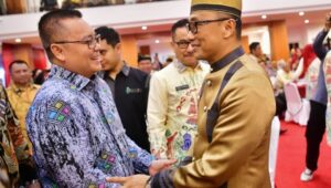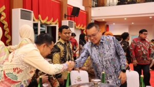 Penjabat Bupati Wajo, Andi Bataralifu yang hadir bersama para Kepada Daerah se Sulsel menyampaikan Selamat dan Terima Kasih kepada Zudan Arif Fakhrulloh bersama Istri.