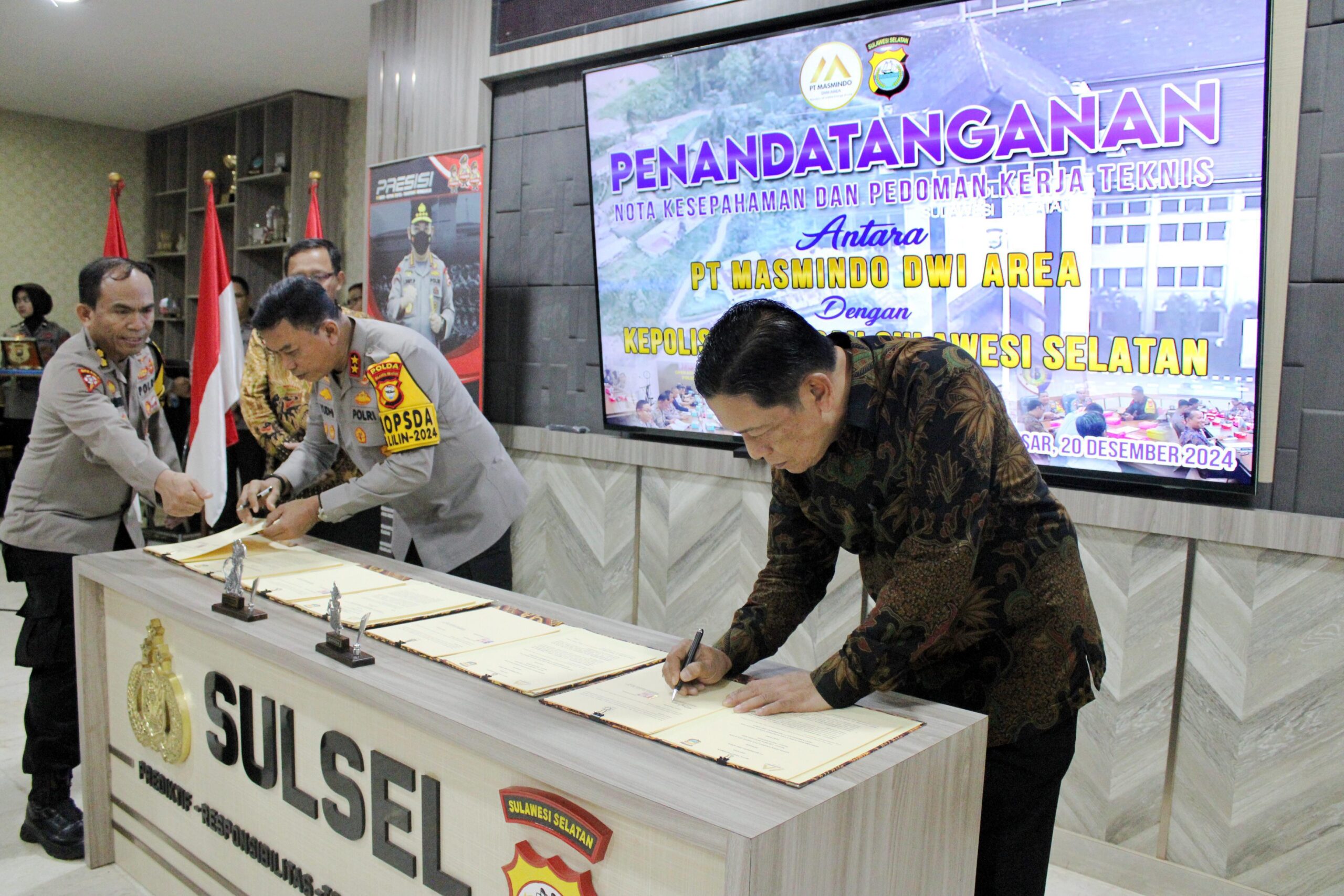 Makassar, 23 Desember 2024 – PT Masmindo Dwi Area (MDA) menandatangani Nota Kesepahaman dengan Kepolisian Daerah Sulawesi Selatan (POLDA Sulsel) dalam rangka memperkuat pengamanan dan penegakan hukum di wilayah operasional MDA sebagai Objek Vital Tertentu.