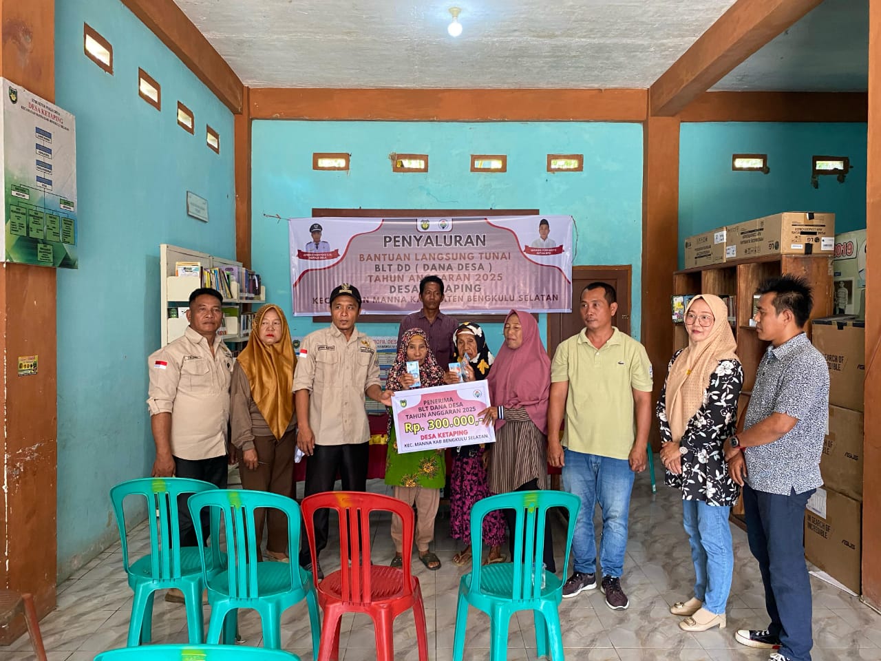Bengkulu Selatan, Mediator Jurnal TV –Pemerintahan Desa Ketaping Kabupaten Bengkulu Selatan Kecamatan Manna membagikan Dana BLT DD Ta.2025 kepada 5 Keluarga Penerima Manfaat (KPM), Jum’at(11 April 2025).
