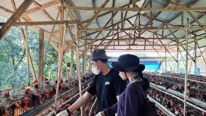 Agustus 2025 — Di tengah riuh suara ayam, Andin dan mahasiswa KKN memulai sosialisasi singkat tentang cara mengaplikasikan obat penetral bau amoniak. Bersama pak Taufik selaku ABK siap mempraktikkan langkah demi langkah.
